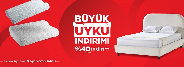 • Yastıklar: Uyku kalitesini tamamlayan, baş ve boyun sağlığını koruyan visco teknolojisi ile üretilmiş tüm yastıklarda net %30 indirim.
